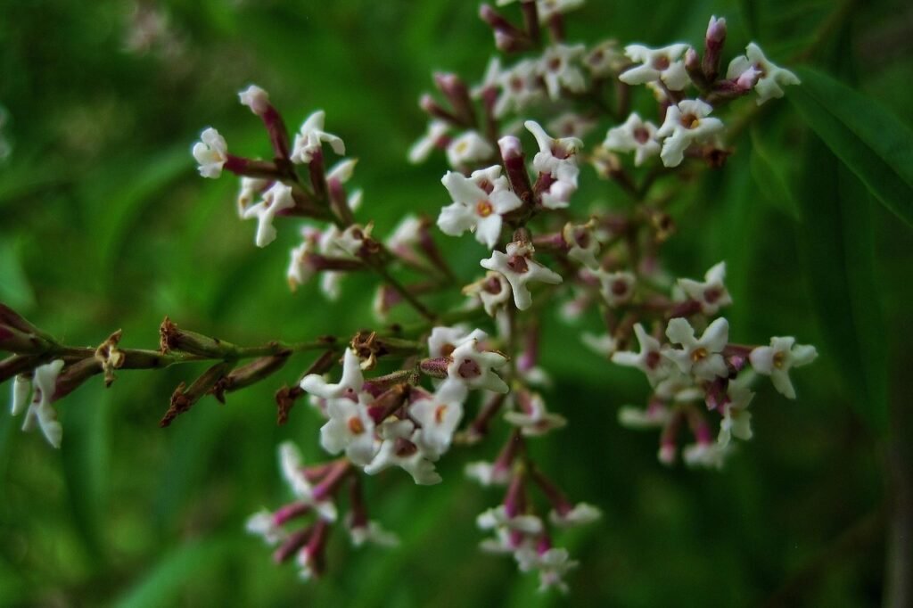 Flowers: Lemon verbena produces small, pale purple to white flowers. They grow in loose clusters and are more subtle compared to the boldness of the leaves.